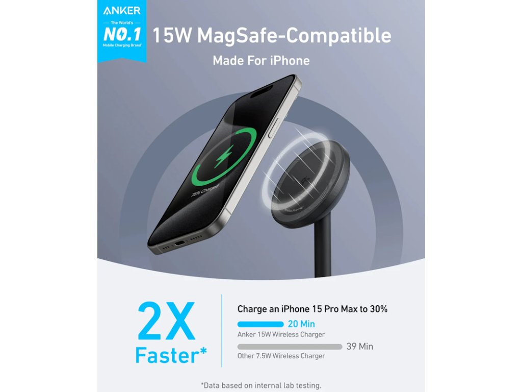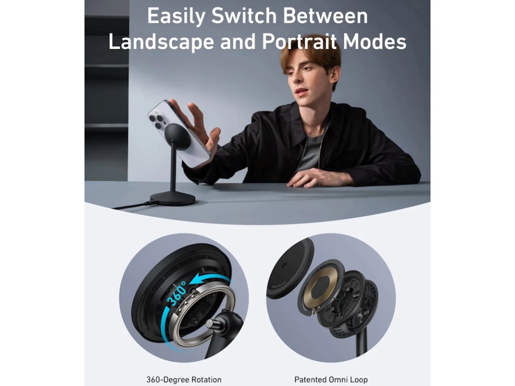Tato bezdrátová nabíječka vybavená exkluzivním otočným mechanismem Anker plně podporuje režim StandBy iPhonu, který umožňuje plynulý přechod mezi orientací na výšku a na šířku a zároveň optimalizuje využití energie a zvyšuje účinnost zařízení během nabíjení.