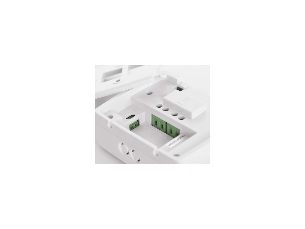 Bezdrátový přijímač P5611OT, bílý, dosah 100 m, napájení 230 V AC, pracovní frekvence 868 MHz, spínání 230 V AC nebo beznapěťové, spínaná zátěž 16 A odporově, 5 A induktivně. Rozměry: 37×115×91 mm. Bezdrátová komunikace OpenTherm.