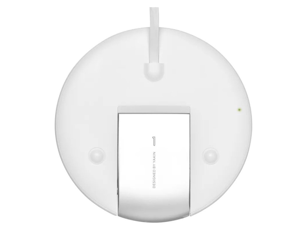 Svým zaobleným bílým tělem (o rozměrech 125 × 125 × 9 mm) dodá šmrnc každé pracovně, obýváku i ložnici. Zejména při ukládání ke spánku oceníte, že se potmě a rozespalí nemusíte strefovat koncem nabíječky do miniaturní dírky na mobilu.