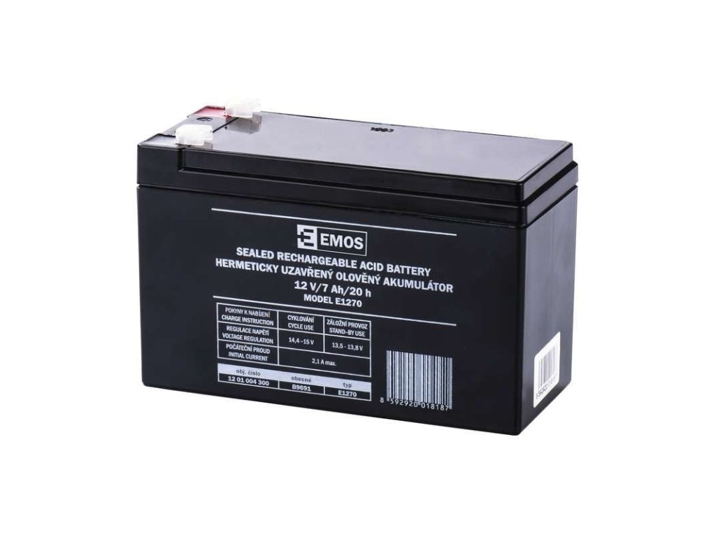 Akumulátor EMOS je vhodný jako náhradní baterie pro elektronické systémy - EZS, EPS (ústředny Jablotron a Paradox), záložní systémy výtahů, dětské vozítka apod. Bezúdržbový, ventilem řízený olověný akumulátor v provedení AGM umožňuje být používán v libovolné poloze. Optimální životnost v záložních systémech je 5 let.
