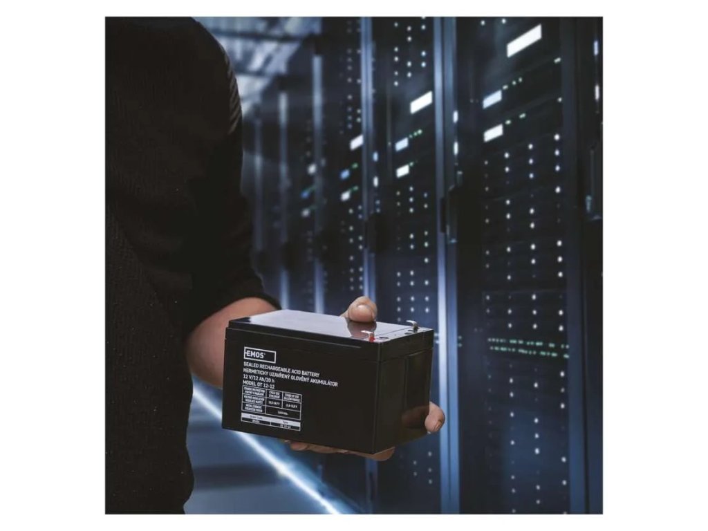Akumulátor EMOS je vhodný jako náhradní baterie pro záložní zdroje UPS, RBC kity, elektronické systémy EZS, EPS, záložní systémy výtahů apod.