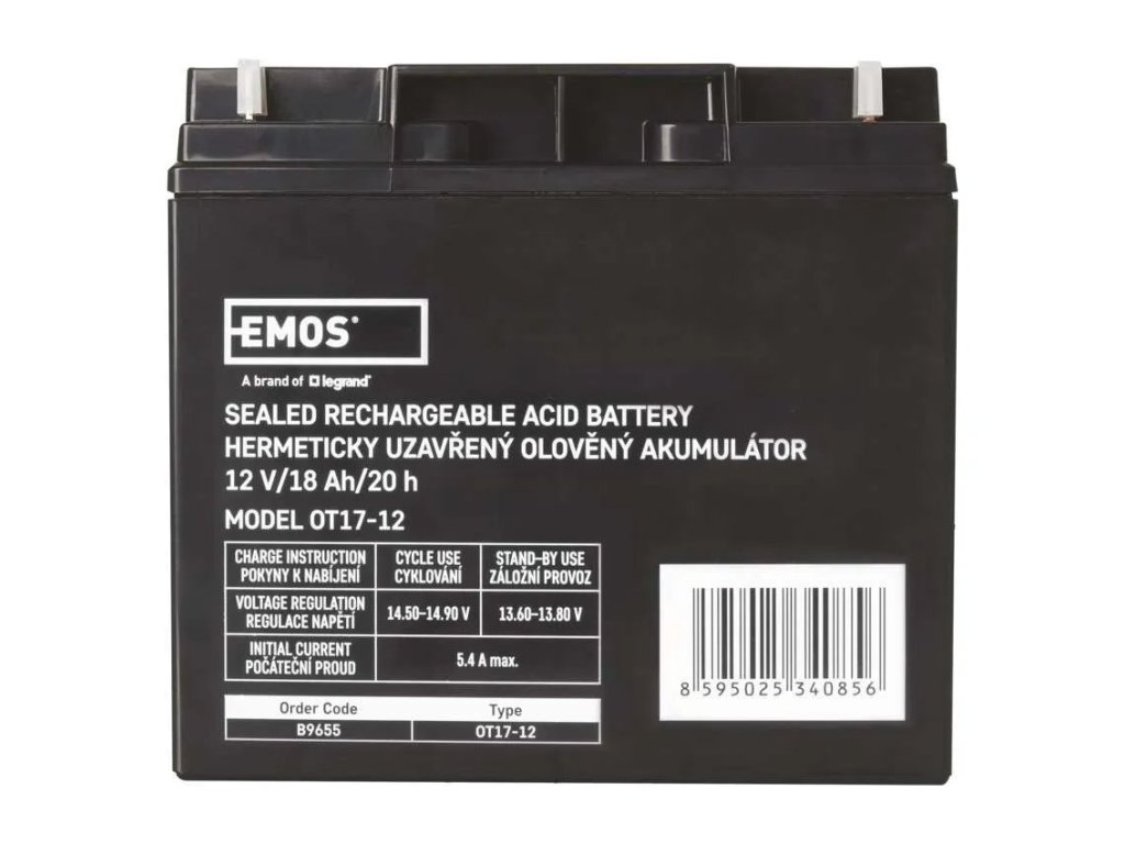 Akumulátor EMOS je vhodný jako náhradní baterie pro záložní zdroje UPS, RBC kity, elektronické systémy EZS, EPS, záložní systémy výtahů apod