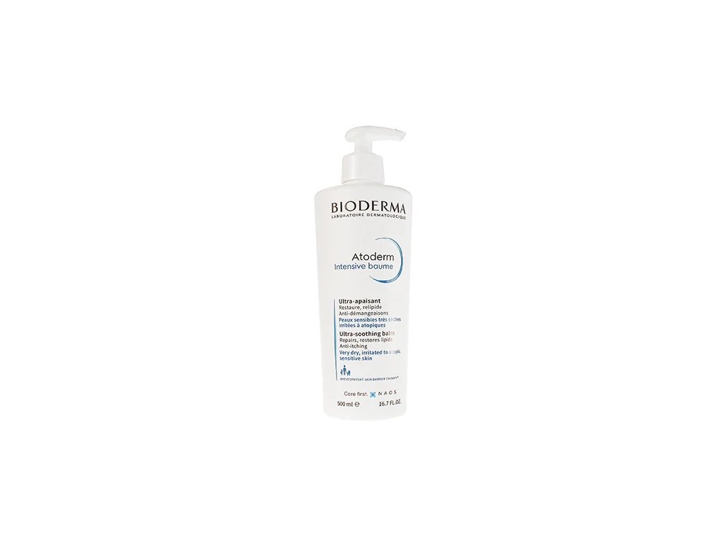 Balzám na tělo a obličej Bioderma Atoderm Intensive Baume zmírňuje příznaky atopické pokožky, poskytuje jí hydrataci a posiluje kožní bariéru. Má hypoalergenní složení vhodné pro dospělé, děti i kojence.