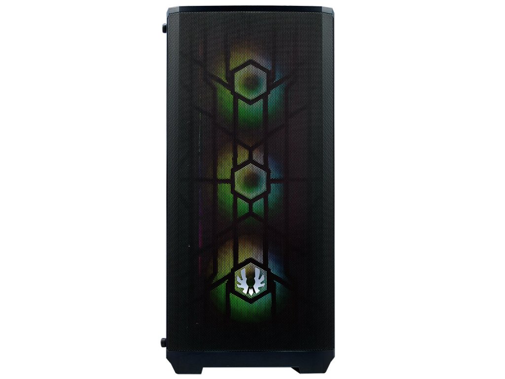 Skříň formátu Middle Tower nabízí dvě 2,5" pozice pro SSD disky a dvě 3,5" pozice pro pevné disky. Na horním panelu se nachází dva USB 3.0 porty, sluchátkový výstup a audio vstup pro mikrofon. Skříň je vybavena čtyřmi 120 mm ventilátory disponujícími ARGB podsvícením, které spolu s průhlednou bočnicí zajišťují vytříbený design. Důmyslné řešení umožňuje pohodlné umístění až 360 mm dlouhého výměníku vodního chlazení na přední straně. Ve skříni je dostatek prostoru pro chladič CPU do výšky až 160 mm a grafickou kartu o délce 315 mm. Skříň je dodávána bez zdroje. Součástí skříně je také sada prachových filtrů.