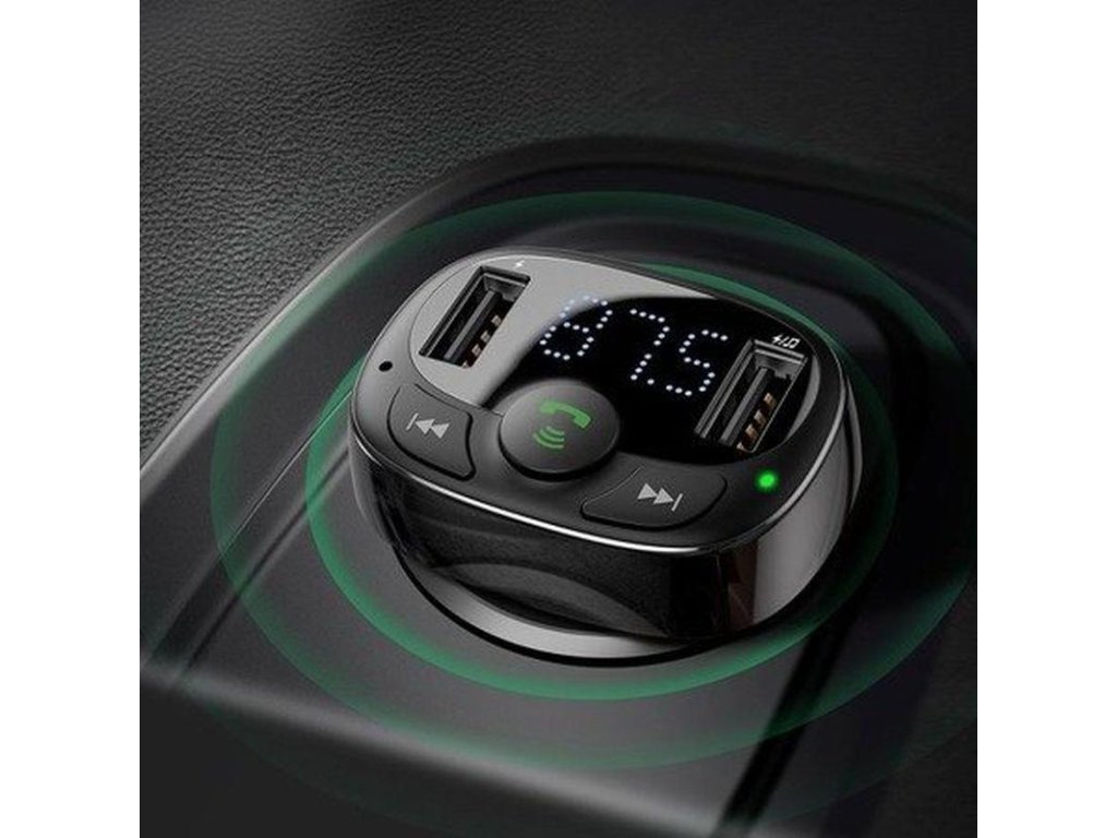 Vysílač FM je multifunkční zařízení. Použitá technologie bluetooth umožňuje bezdrátové připojení 2 telefonů současně a přehrávání hudby. Stačí připojit telefon k vysílači a poté nastavit příslušnou rádiovou frekvenci. Porty USB umožňují nabíjení zařízení (max. 3,4 A) i přehrávání hudby z flash disku. Díky slotu microSD můžete přehrávat hudbu z přenosné paměťové karty. Vestavěný mikrofon a speciální tlačítko pro příjem hovorů fungují jako handsfree pro uskutečňování hovorů. Zařízení může sloužit také jako hlasový zesilovač pro navigaci v autě. Všechny potřebné informace se zobrazují na vestavěném LED displeji.