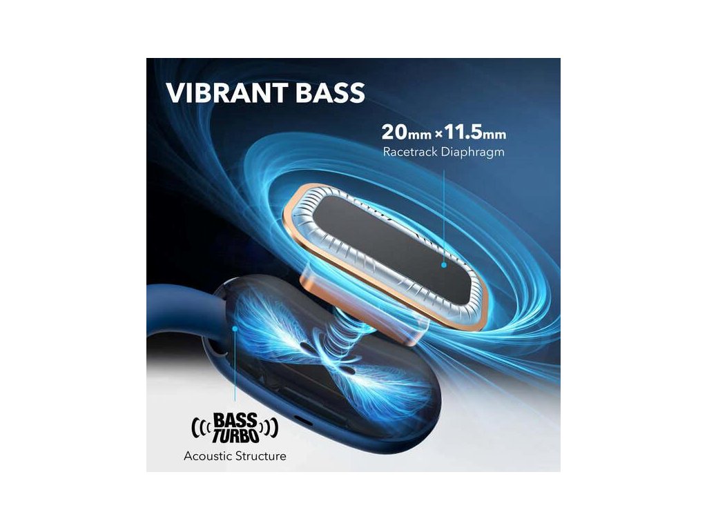 Bluetooth sluchátka Anker soundcore AeroFit 2,open-ear, nabíjecí pouzdro, konektor Type-C, bluetooth 5.4, doba přehrávání: 10 hodin (s pouzdrem: 42 hodin), nabíjení: 1,5-2 hodiny, maximální hlasitost 91 dB, frekvence 20 Hz-20 kHz, IP55, BassTurbo technol