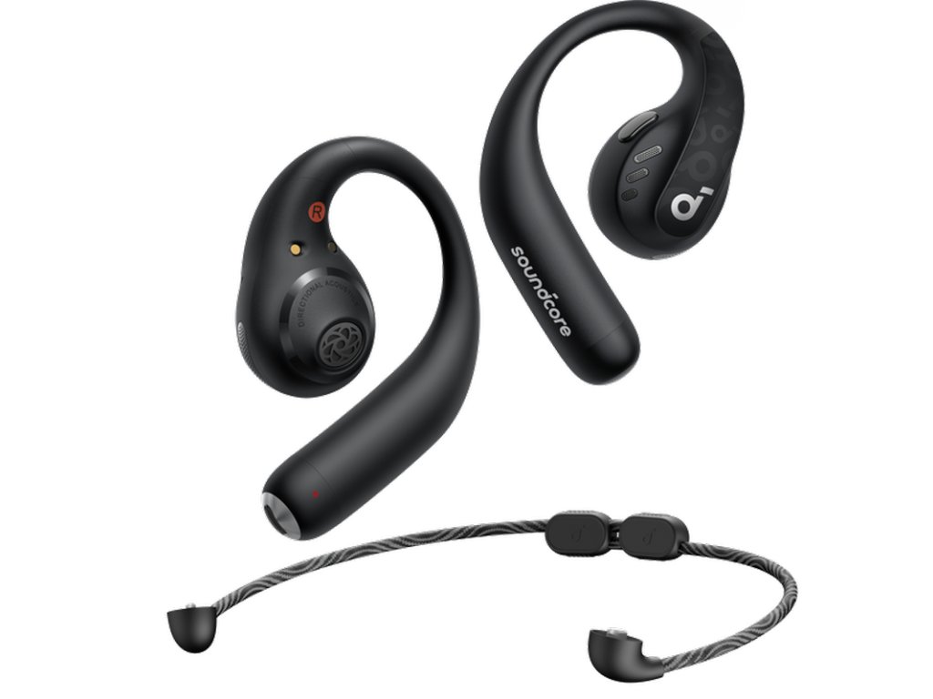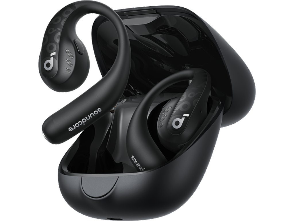 Bluetooth sluchátka Anker soundcore AeroFit Pro, Clip on konstrukce s open?ear designem, nabíjecí pouzdro, ovládání tlačítky, IPX5, odnímatelný a nastavitelný nákrčník, 4 mikrofony , AeroFit Pro, na jedno nabití vydrží až 14 hodin poslechu, Bluetooth 5.3