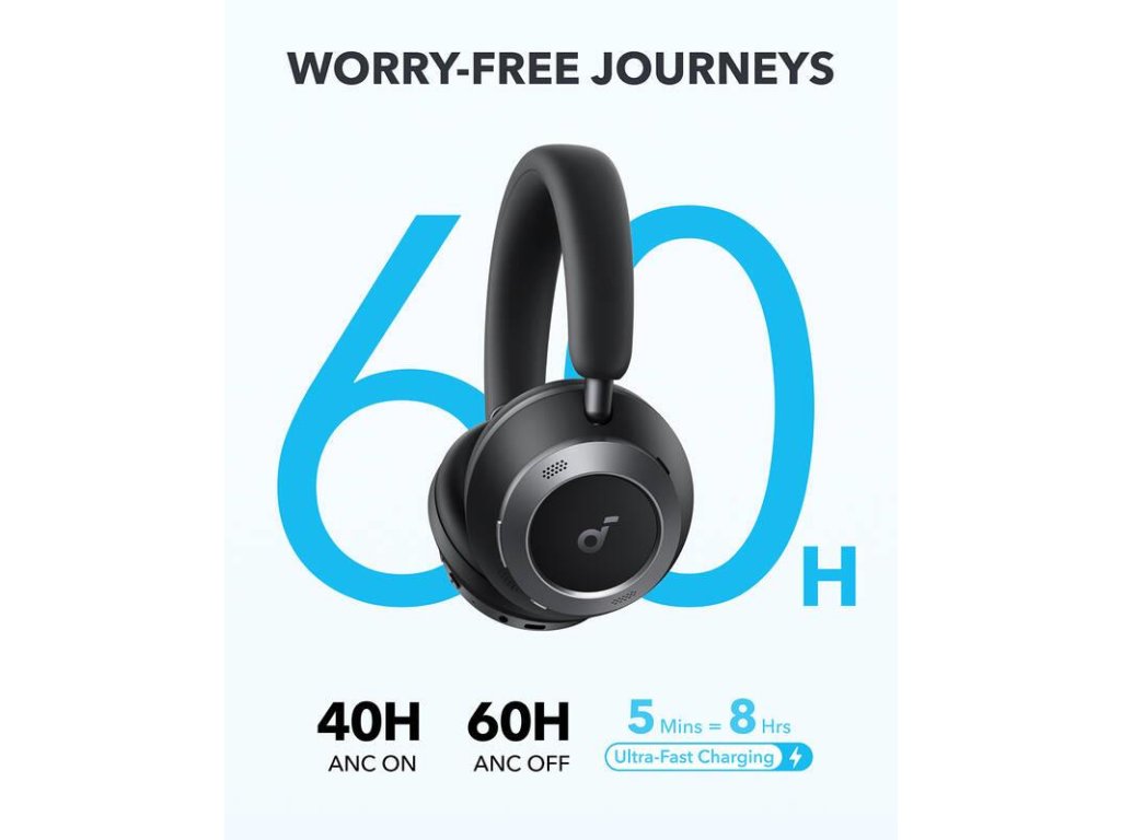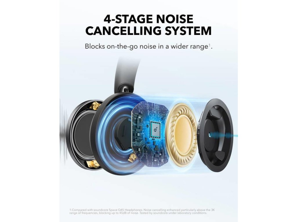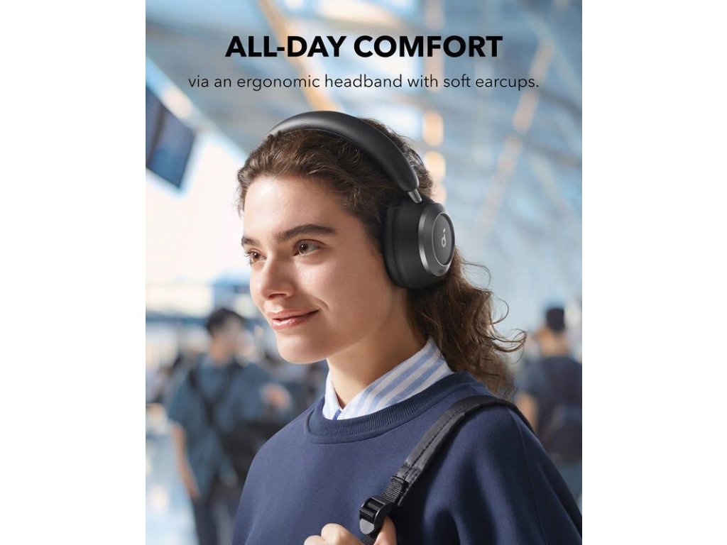 Bluetooth sluchátka Anker soundcore Space One Pro, hlavový most uvolňující tlak a měkké náušníky, vstup 5V/1,2A, kapacita baterie 350mAh, doba přehrávání 40-60 h, velikost měniče 40 mm, frekvenční odezva 20 Hz-40 kHz, impedance 16, Bluetooth 5.3 dosah 15m