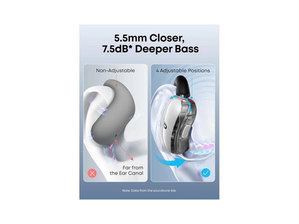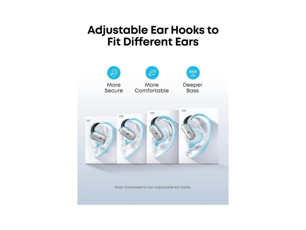 Perfektně padnou do každého ucha: Inovativní čtyřúrovňově nastavitelné ušní háčky Soundcore zajišťují pohodlné nošení přizpůsobené více než 99 % tvarů a velikostí uší.