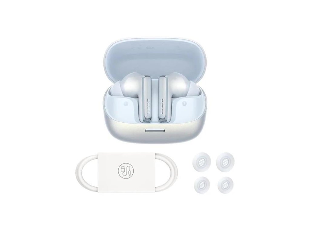 Sluchátka Baseus Bowie M2s Pro, Bluetooth 5.4, dosah 10m,ANC, baterie sluchátka 35 mAh (až 7 hod provozu při vypnutém ANC), baterie nabíjecí pouzdri 400 mAh (až 30 hod provozu),nabíjení pomocí USB-C, doba nabíjení cca 1hod, barva bílá