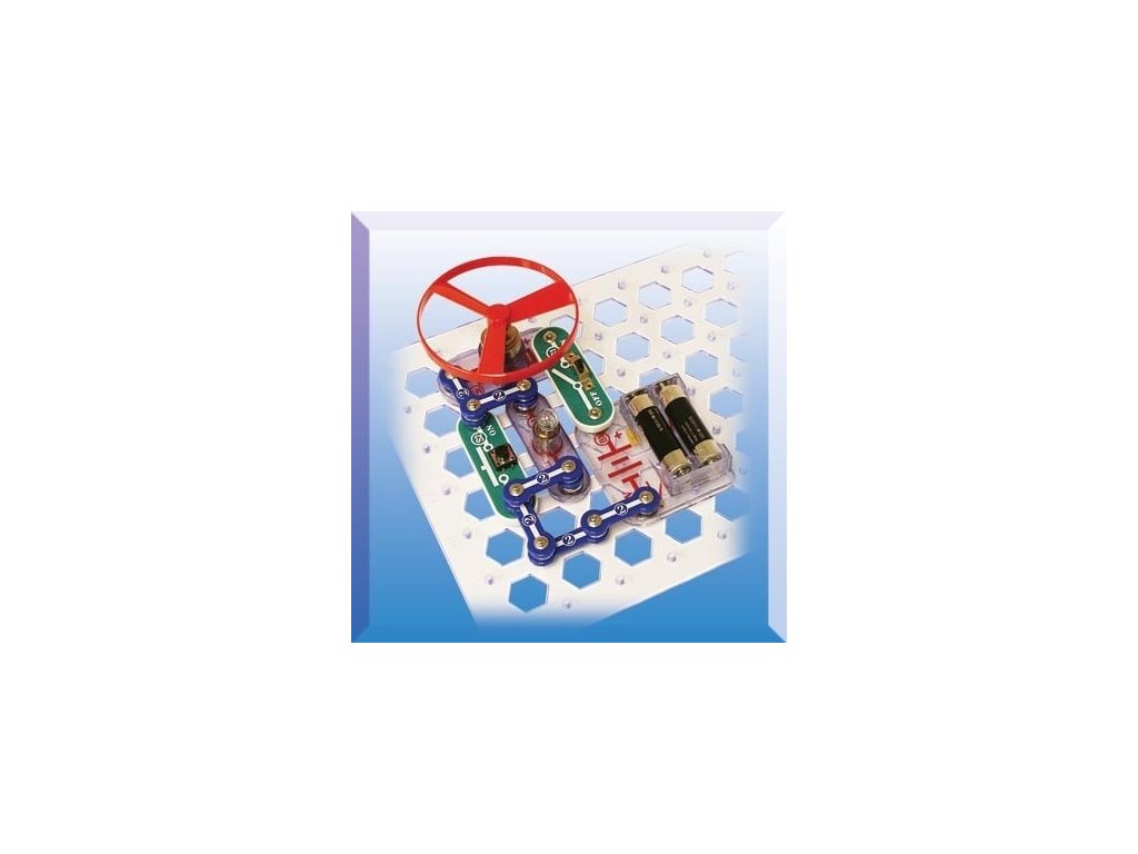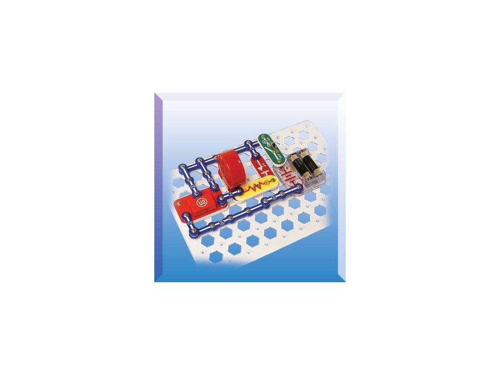 Elektronická stavebnice Boffin 100 obsahuje 30 součástek, z nichž lze postavit 100 projektů, např. lampičku, větrák, poplach, sirénu, zvonek aj.