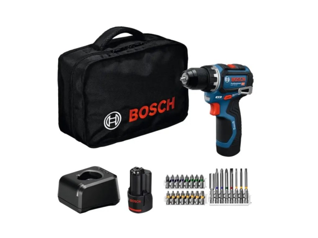 První 12V vrtací šroubovák Bosch Professional s funkcí Advanced KickBack Control pro minimalizaci rizika zranění. Mimořádně kompaktní konstrukce (délka hlavy 142 mm) a nízká hmotnost (0,7 kg bez akumulátoru) usnadňuje práci ve stísněných prostorech. Má rychloupínací sklíčidlo 0,8 – 10 mm a dosahuje krouticího momentu 32 Nm.