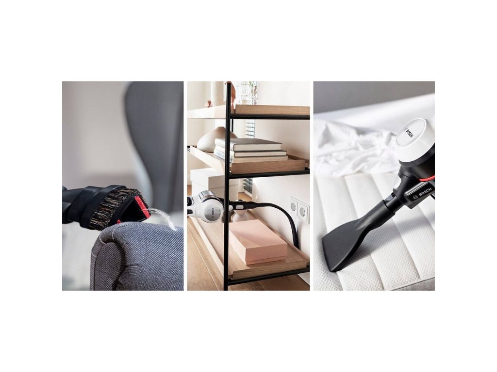 Manipulace bez námahy – praktické funkce, jako je samostatně stojící trubice, uvolnění hubice nohou a parkovací klip, usnadňují proces vysávání