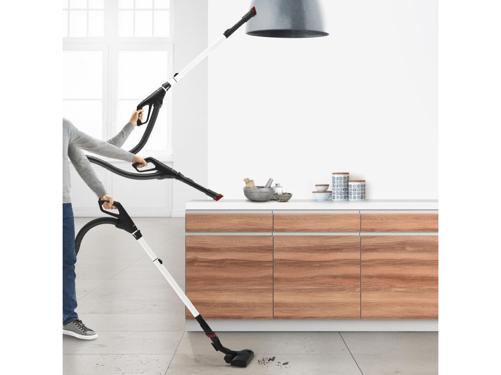sáčkový vysavač • příkon 700 W • HEPA filtr • akční rádius 12 m • kovová teleskopická trubice • objem sáčku 4 l • záruka 10 let na motor po registraci • hlučnost 66 dB • regulace výkonu přímo na rukojeti • hubice na čalounění, turbo hubice, XXL hubice