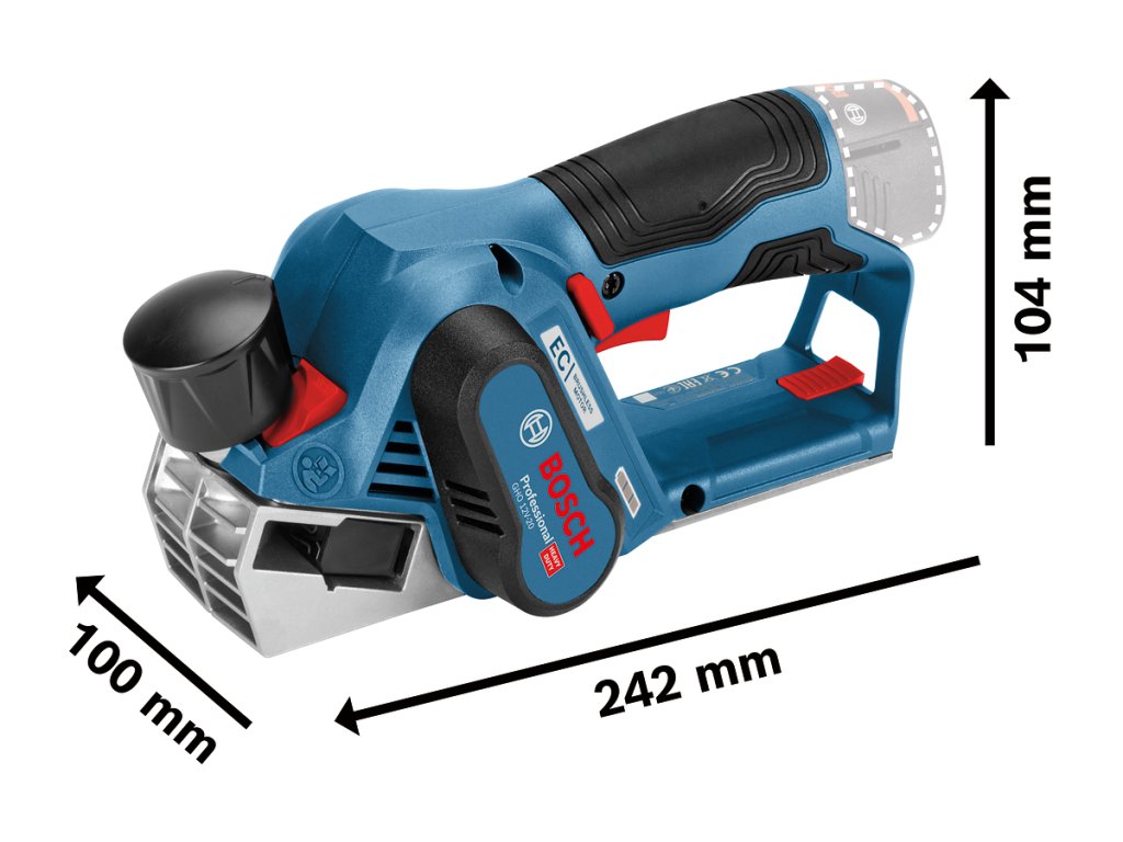 Ergonomie: Snadná manipulace díky optimalizovanému rovnovážnému bodu Kompaktní: Díky kombinaci bezuhlíkového motoru a 12V systému Svoboda bez kabelů: Nejlepší ovládání v každé pracovní pozici díky prvnímu 12V hoblíku od firmy Bosch