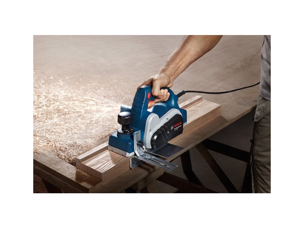 Elektrický hoblík, 650W, nastavitelný úběr 0 - 2,6 mm, nastavitelná hloubka drážky 0 - 9 mm, optimalizovaný proud vzduchu pro odvod pilin, volnoběžné otáčky až 16500/min