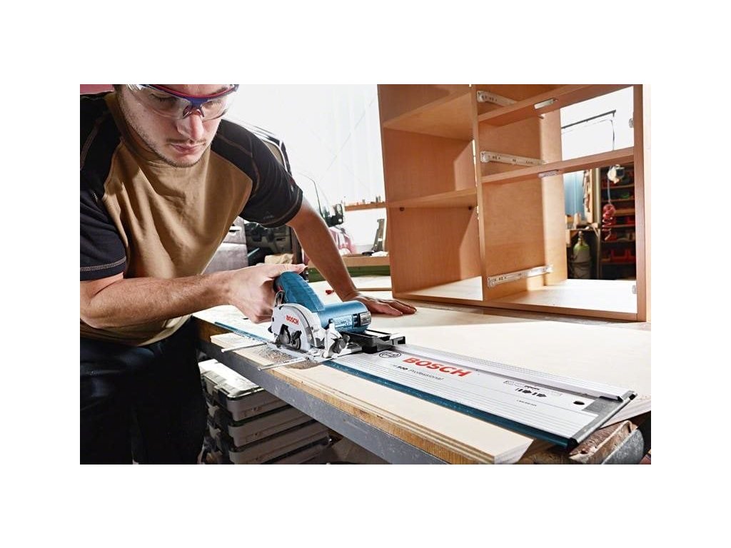 Součástí dodávky boční doraz a adaptér pro vodicí lištu, optimalizované pro systém vodicích lišt Bosch