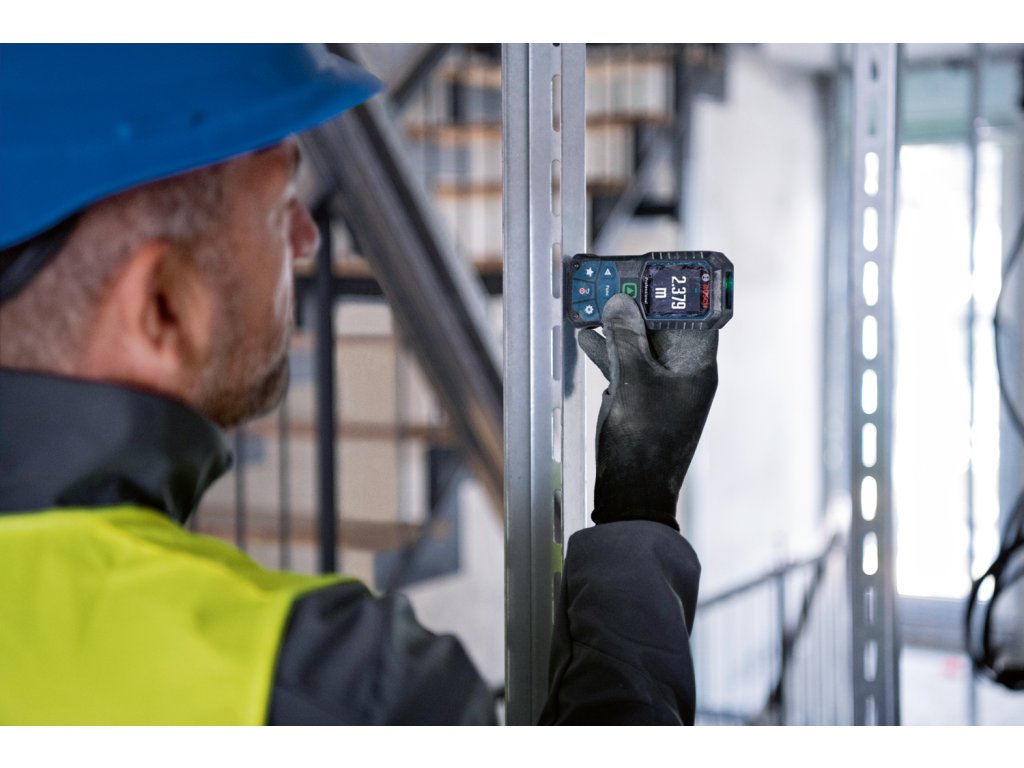 Laserový měřič vzdálenosti se zeleným laserem pro vynikající viditelnost laserového bodu i na drsných staveništích.