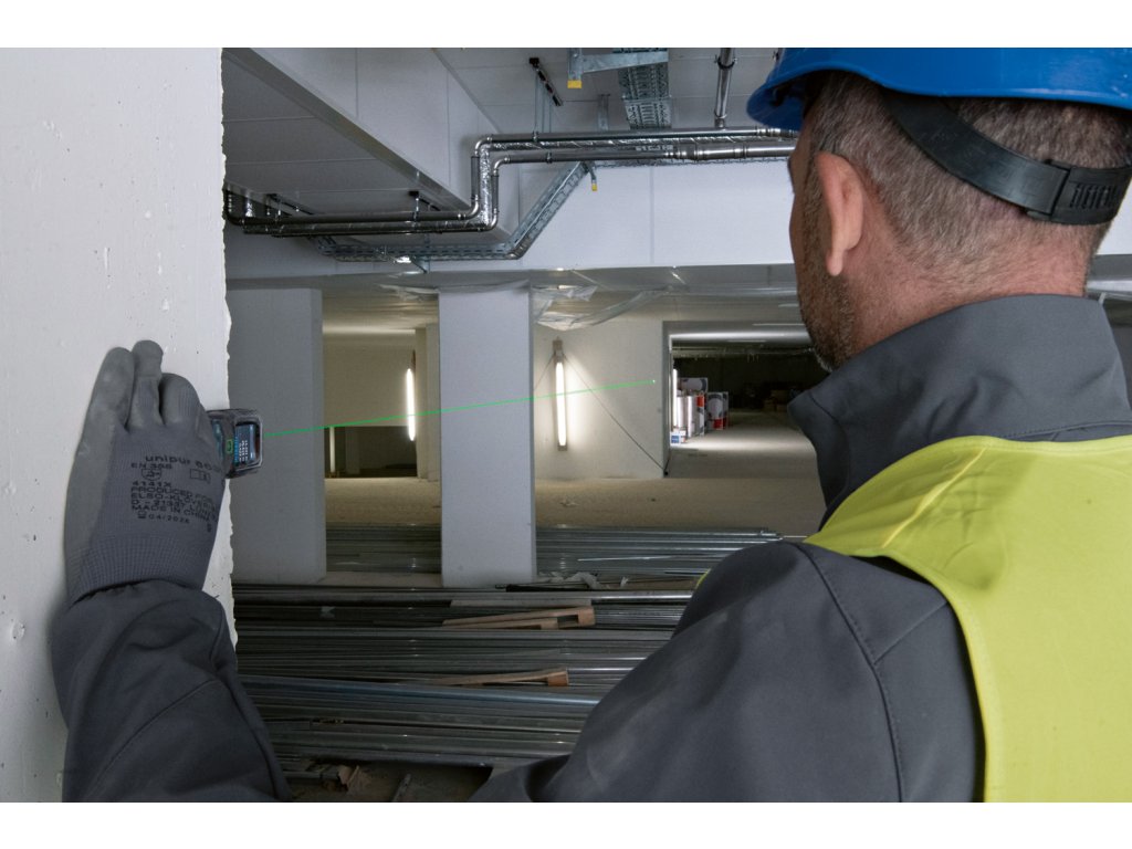 Zelený laser pro vynikající viditelnost laserového bodu i na drsných staveništích