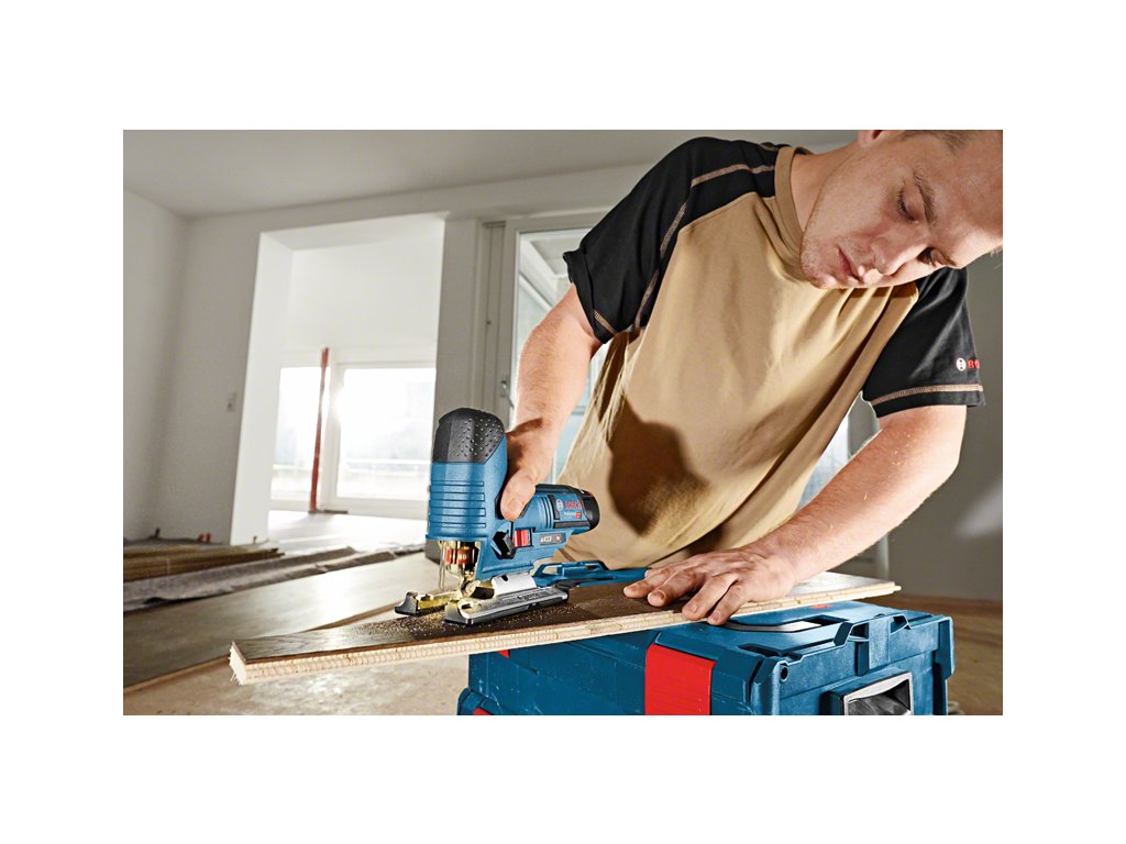 Mimořádně kompaktní a lehká 12V kmitací pila (Jen 1,5 kg) • Vysoký řezný výkon a dlouhá doba chodu • Rukojeť blízko řezné čáry pro extra přesné řezy • Hloubka řezu do dřeva 70 mm • 2x 3,0 Ah akumulátor (nabití za 50 min) • L-BOXX 102