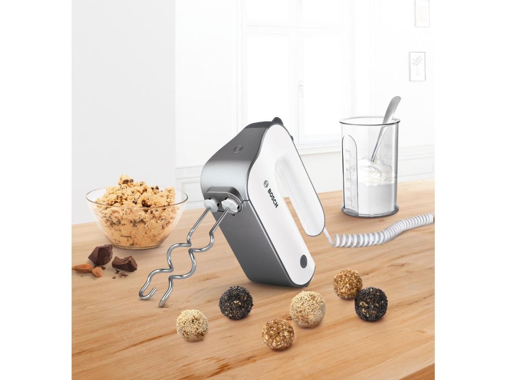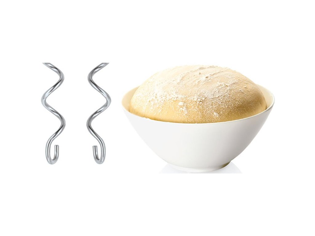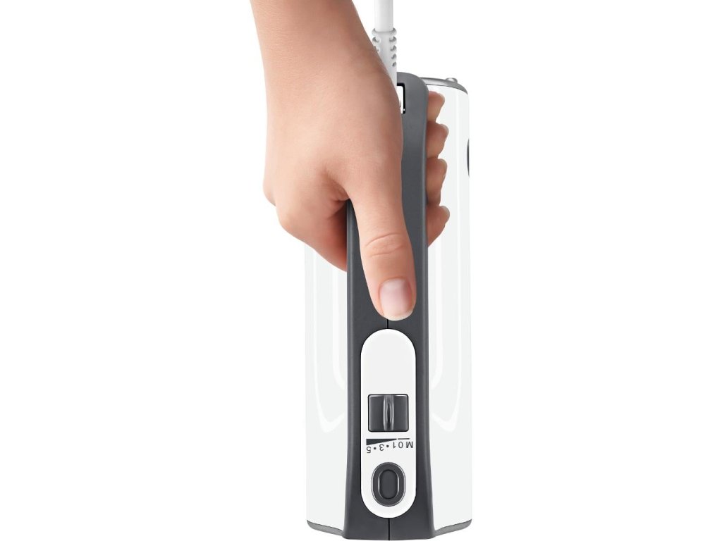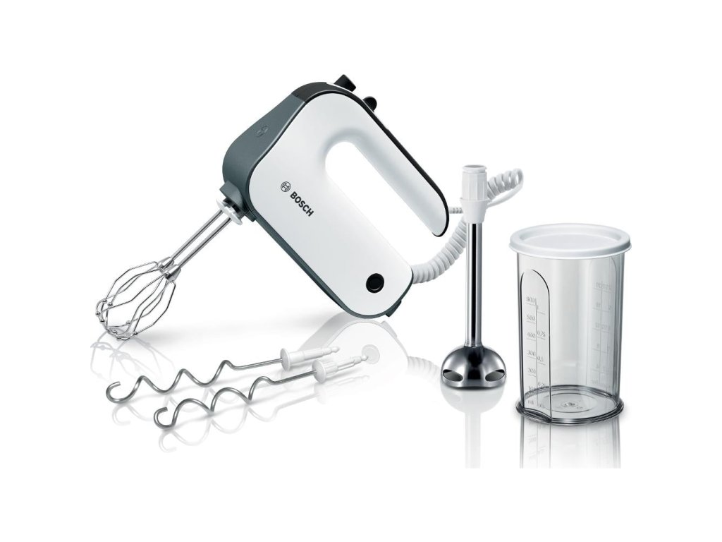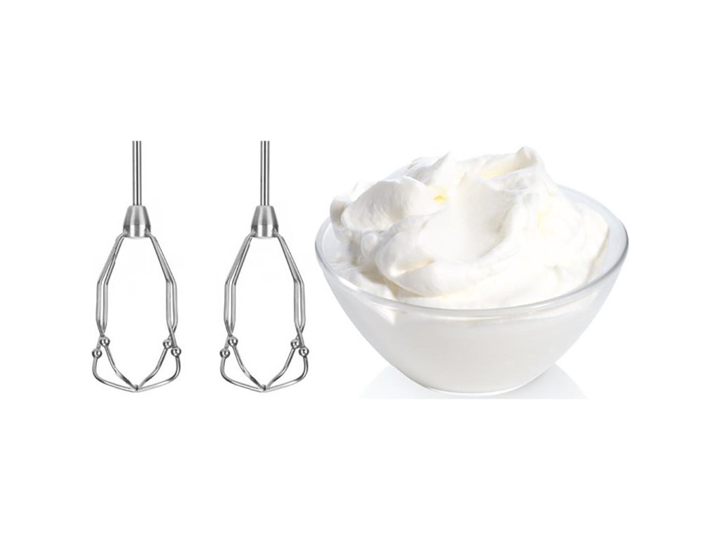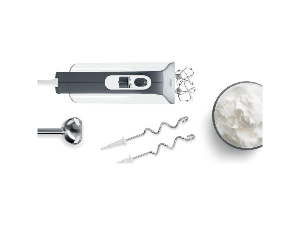 ruční šlehač • příkon 850 W • 5 rychlostí • 2 šlehací • 2 hnětací metly • mixovací noha • mixovací nádoba