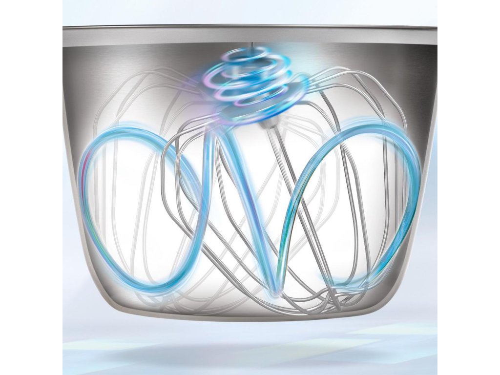 Velká nerezová mísa o objemu 3,9 l: speciálně navržený tvar pro optimální přípravu těsta (až 2,7 kg piškotového nebo 1,9 kg kynutého těsta)