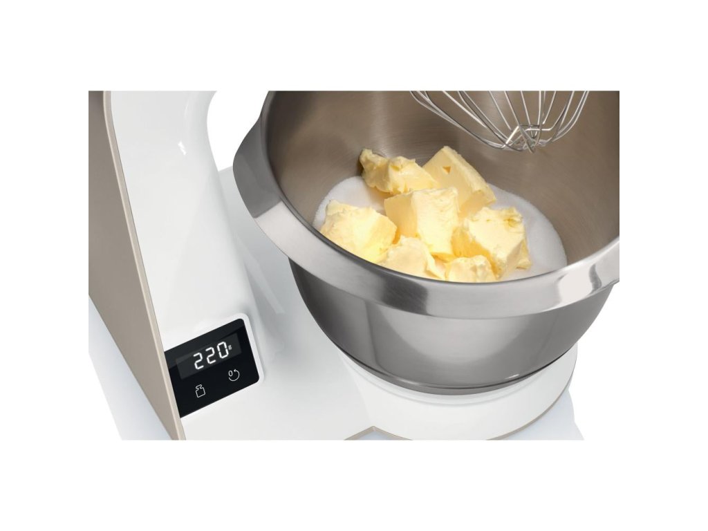 kuchyňský robot • planetární způsob míchání • příkon 1000 W • objem mísy 3,9 l • materiál mísy nerez • počet rychlostí 7 • integrovaná váha • šlehání, mísení, hnětení, krouhání, míchací metla