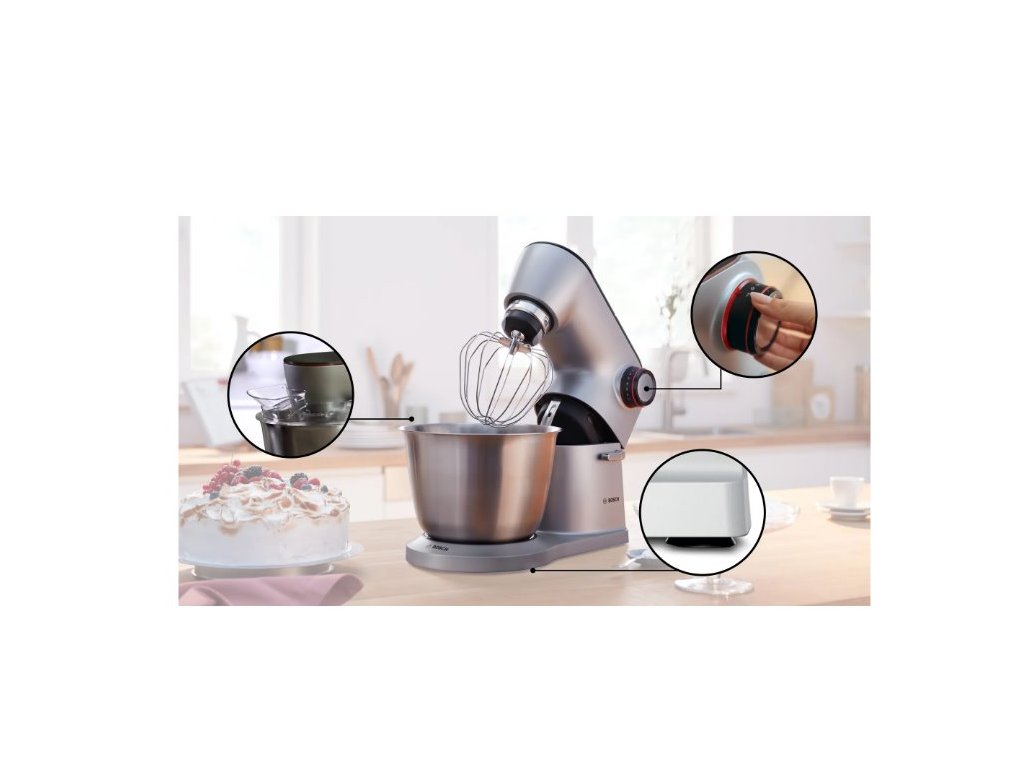 Silný 1400 W motor, sada profesionálních nástrojů a inteligentní senzor pomohou perfektně zpracovat každé těsto.