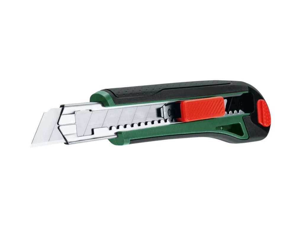 Odlamovací nůž Bosch je vysoce kvalitní nářadí ideální na řezací práce doma i na zahradě. Má dvoudílnou rukojeť vytvarovanou do dlaně s velkými měkkými úchopovými plochami pro maximální ergonomické pohodlí a ovládání. Tento odlamovací nůž lze používat se standardními 18mm čepelemi se 7 odlamovacími díly. V praktickém úložném prostoru na zadní straně nože, který pojme celkem až šest čepelí, jsou uloženy tři náhradní čepele. Pro bezpečné vyjmutí a výměnu čepelí je nůž vybaven automatickým vysouváním čepele a automatickou pojistkou, která čepel během používání udrží pevně na místě