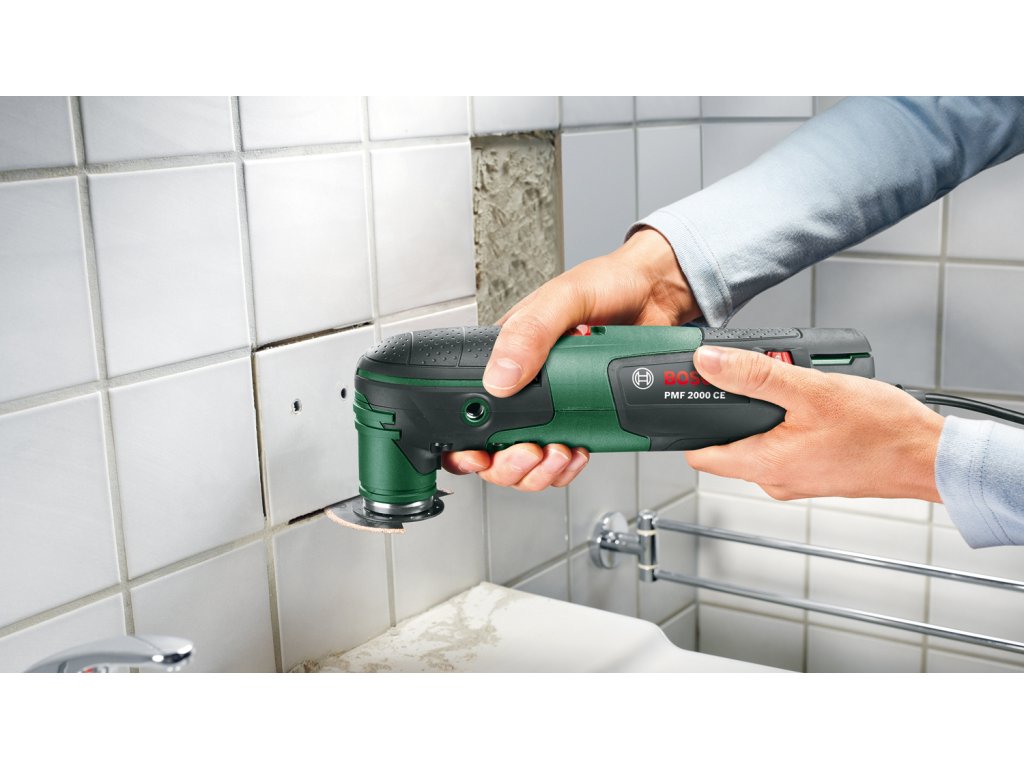 Kmitací multifunkční nářadí dokáže řezat, brousit, škrábat, frézovat, pilovat a leštit dřevo, kov, plast, sádrokarton, spárovací hmoty i maltu.