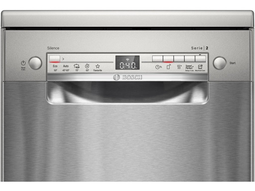 Volně stojící myčka nádobí Bosch SPS2HMI42E je skvělým pomocníkem do každé domácnosti. Pro její úzké provedení se dokonce vejde i do míst, kam se vám myčka standardní velikosti nedostane. Nabízí výběr z pěti programů a tří speciálních funkcí. Velkou předností je kompatibilita s technologií Home Connect, díky které můžete myčku ovládat na dálku pomocí mobilní aplikace. Využijte funkci Oblíbený program, kde si nakonfigurujete vlastní kombinace, které potom spustíte jediným stisknutím.