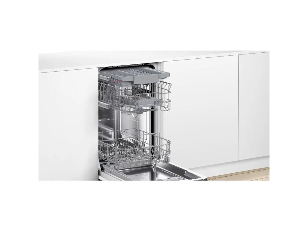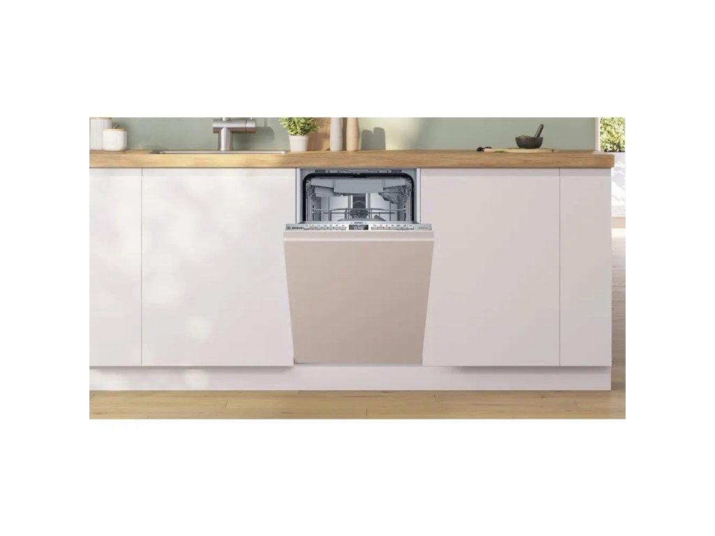 Vestavná myčka nádobí, energetická třída E, kapacita sad nádobí 10, 6 mycích programů, příborová zásuvka, AquaStop, ovládání pomocí aplikace,tichý motor Eco Silence Drive, šířka 45 cm.