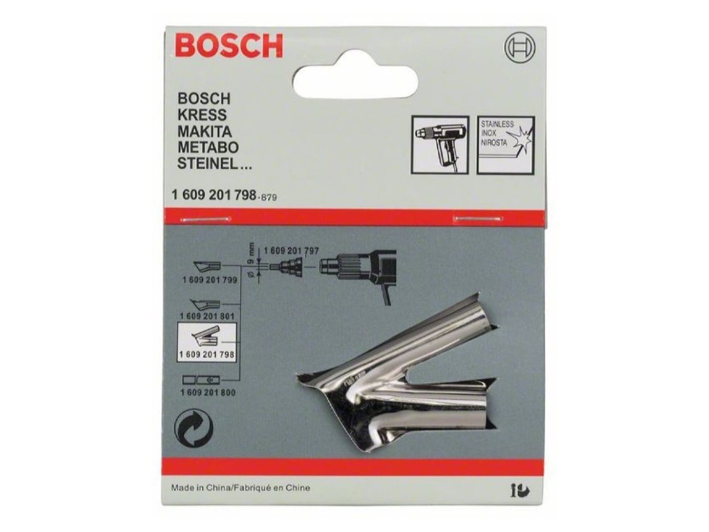S bočním kanálem pro přívod svařovacího drátu - Bezpečnostní doporučení: Vhodná pouze na horkovzdušné pistole Bosch s elektronickou regulací.