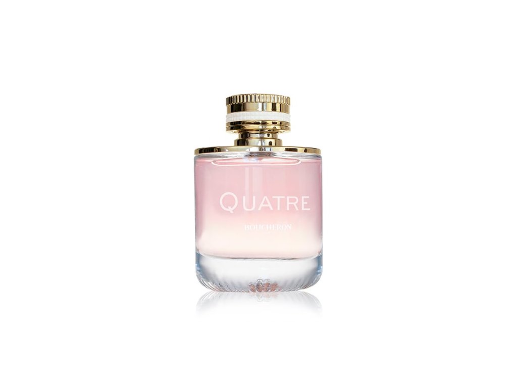 Bohaté složení vůně Boucheron Boucheron Quatre se otevírá ovocným výbuchem citrusů. V srdci se snoubí jemné květiny spolu se sladkými tóny jahod a jablka. Závěrečné akordy vytváří vůně sladkého karamelu, kašmíru a vanilky.