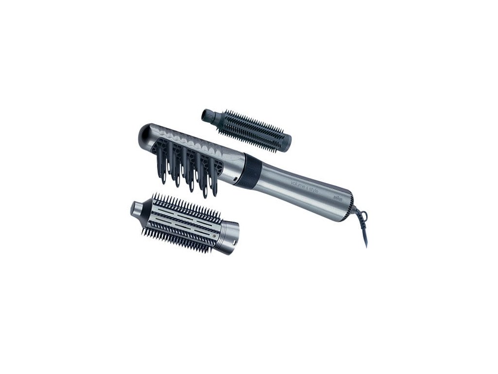 Horkovzdušná kulma Braun AS330 Satin Hair 3, pro úpravu účesu. K dispozici máte velký tvarovací kartáč s průměrem 38 mm, malý tvarovací kartáč s průměrem 23 mm a nástavec pro vytvoření objemu účesu. Příkon: 400 W.