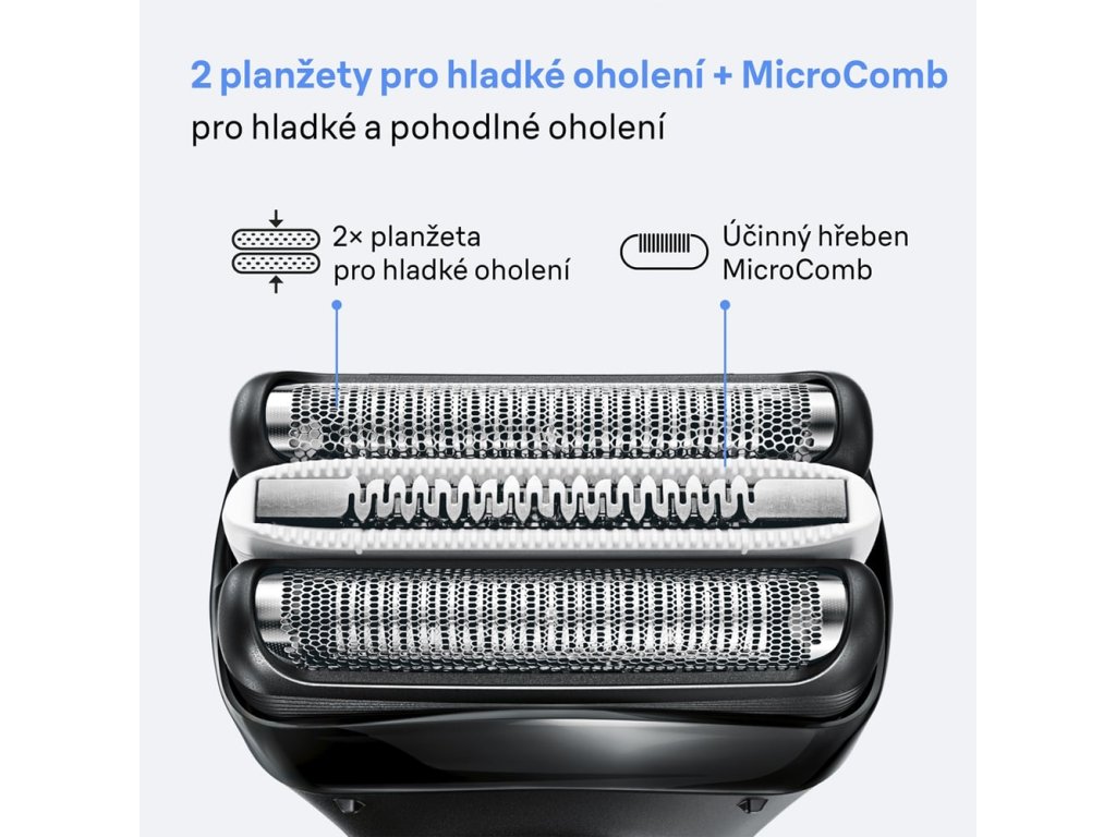 2 planžety + hřebínek MicroComb pro hladké a pohodlné oholení