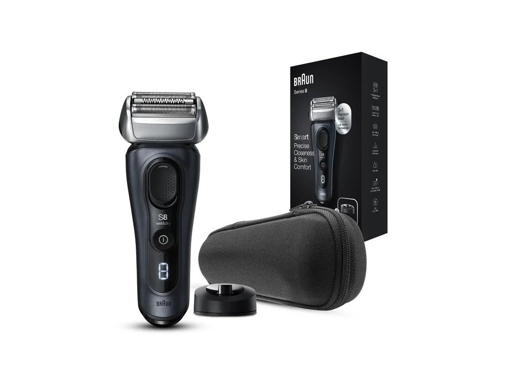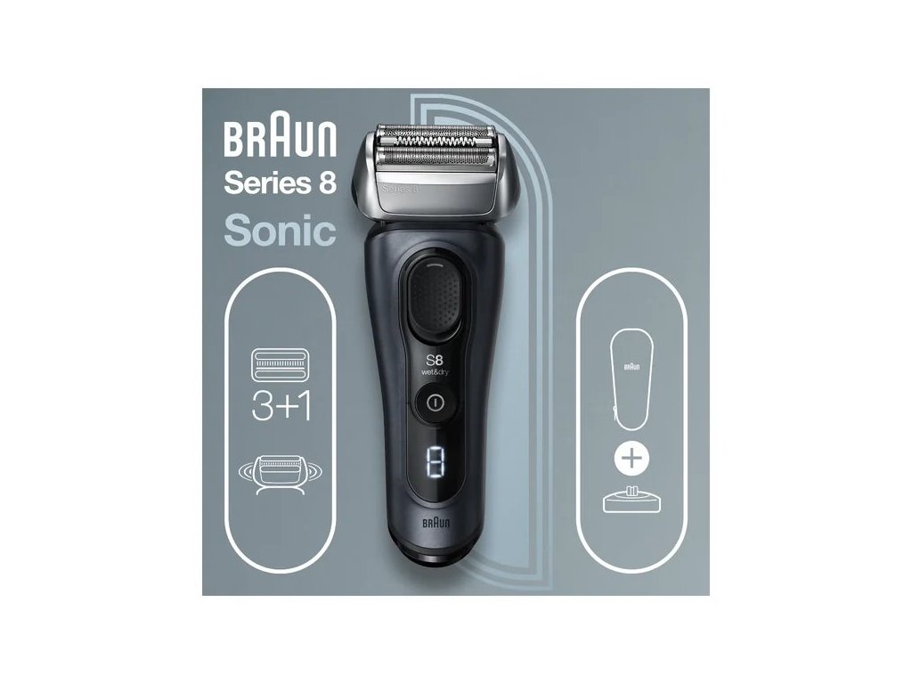 Luxusní elektrický holicí strojek Braun Series 8 vám dopomůže ke hladkému oholení, aniž by při tom dráždil vaši pokožku. Je vybaven jedinečnou sonickou technologií od firmy Braun, která využívá 10 000 mikrovibrací k odstranění více vousů, zatímco strojek hladce klouže po pokožce. Tento elektrický holicí strojek je vybaven 40° výkyvnou hlavou, která se přizpůsobuje konturám tváře - a zaručuje hladké oholení i v těžko přístupných místech.