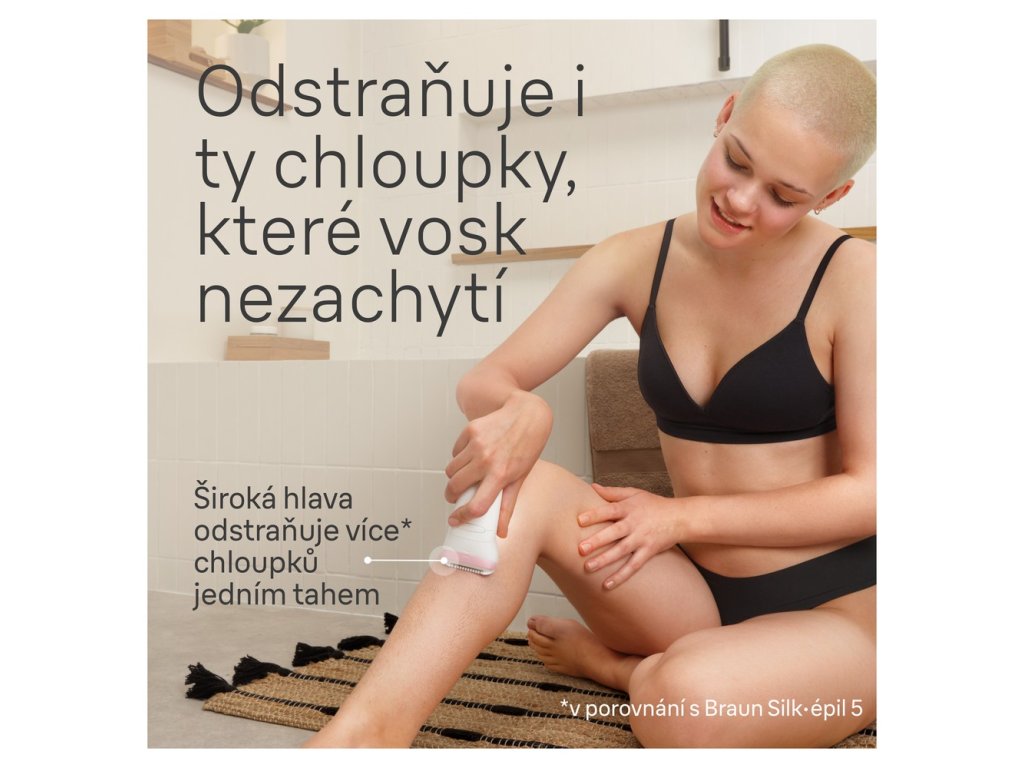 Účinný: Široká hlava odstraní více chloupků1 v jednom tahu. Epilátor odstraňuje i krátké chloupky (0,5 mm), které vosk nezachytí.