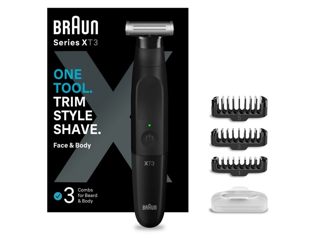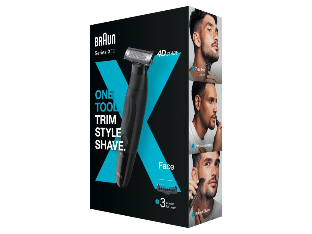 S Braun Series X můžete holit jakýmkoliv směrem.Jeden nástroj pro zastřihování, tvarování i holení: zastřihovač vousů a elektrický holicí strojek pro muže.