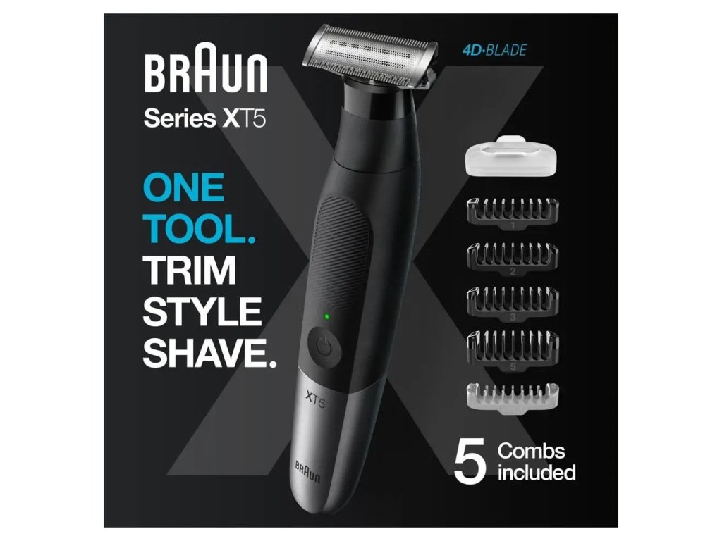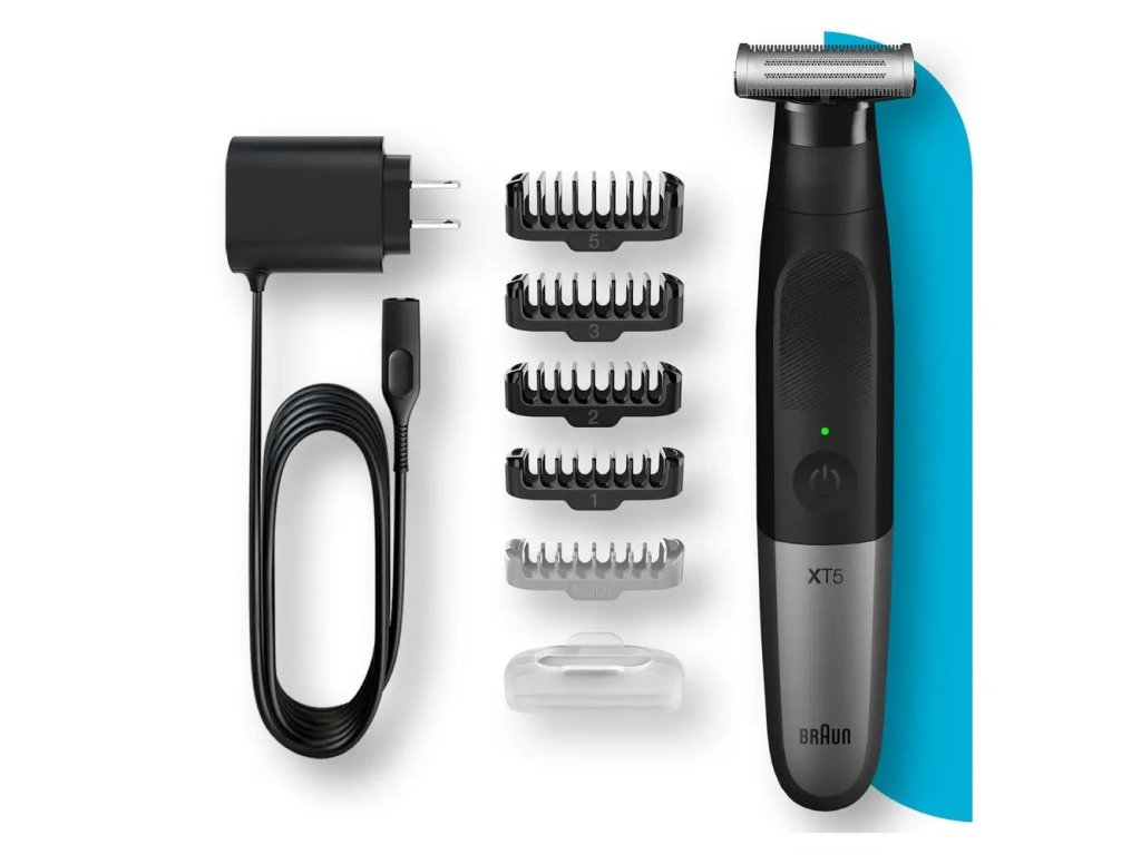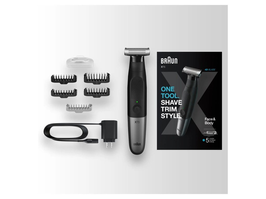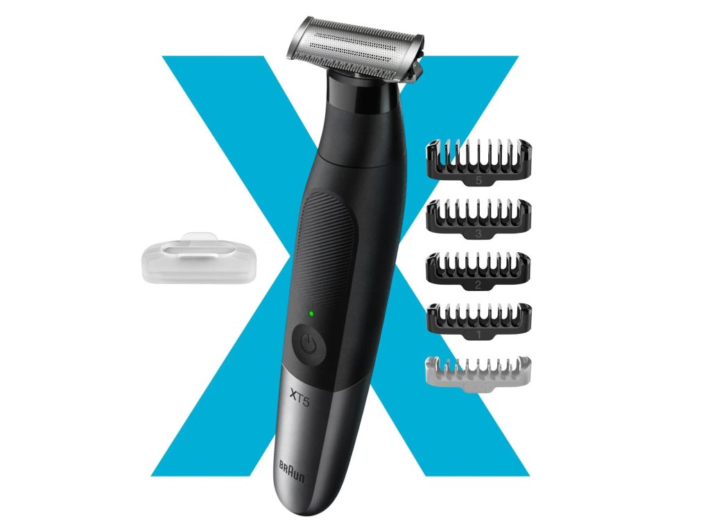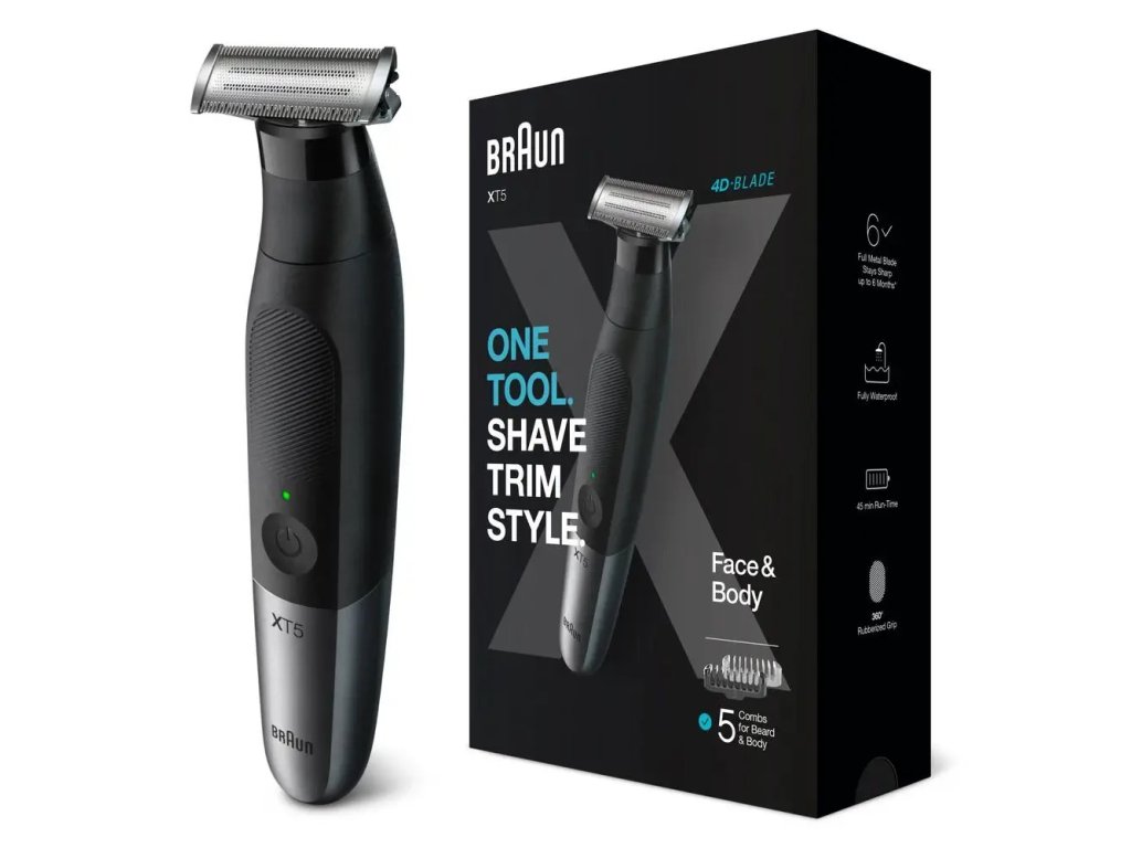 multifunkční zastřihovač • 5 nástavců • doba provozu 45 minut • materiál stříhacích nožů: ocel • 100% voděodolný • pogumovaná protiskluzová rukojeť