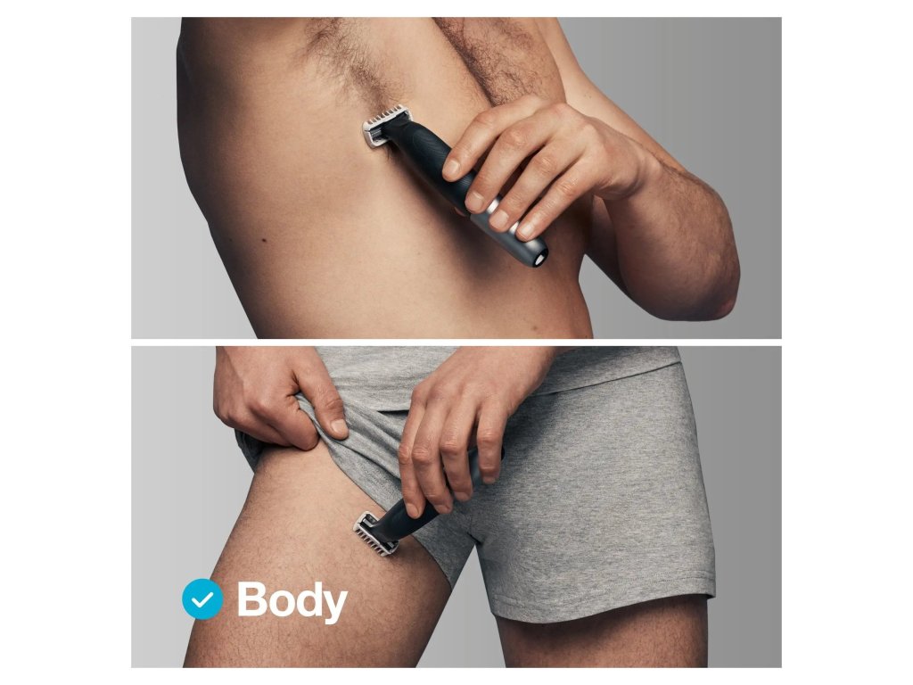 Požadovanou délku snadno zvolíte pomocí nasazovacích nástavců dostupných v délce 1, 2, 3 a 5 mm na obličej a 0 mm (SkinGuard) na tělo.