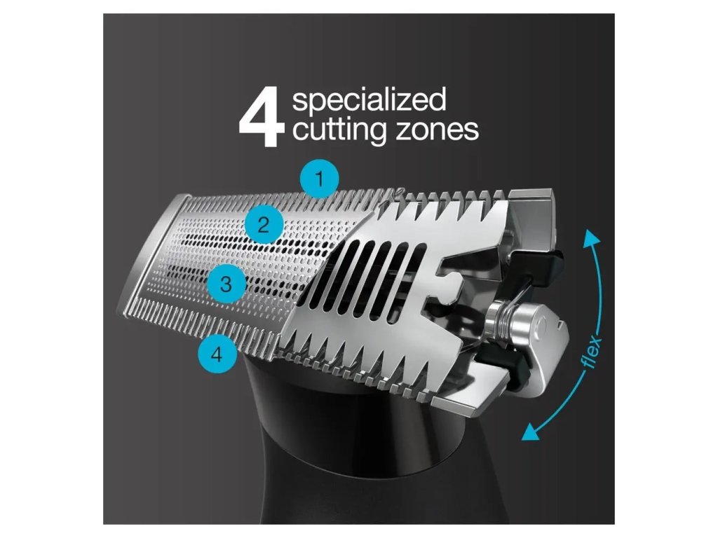 Inovativní hlava s technologií 4D-Blade má 2 centrální holicí zóny a 2 postranní zastřihovače