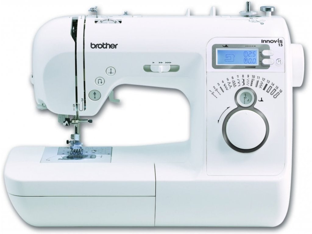 Elektronický šicí stroj Brother Innov-Is 15, 16 programů, 3 druhy automatických knoflíkových dírek, automatické zapošívání, nastavení délky a šířky stehů, volné rameno, automatický navlékač nitě do jehly