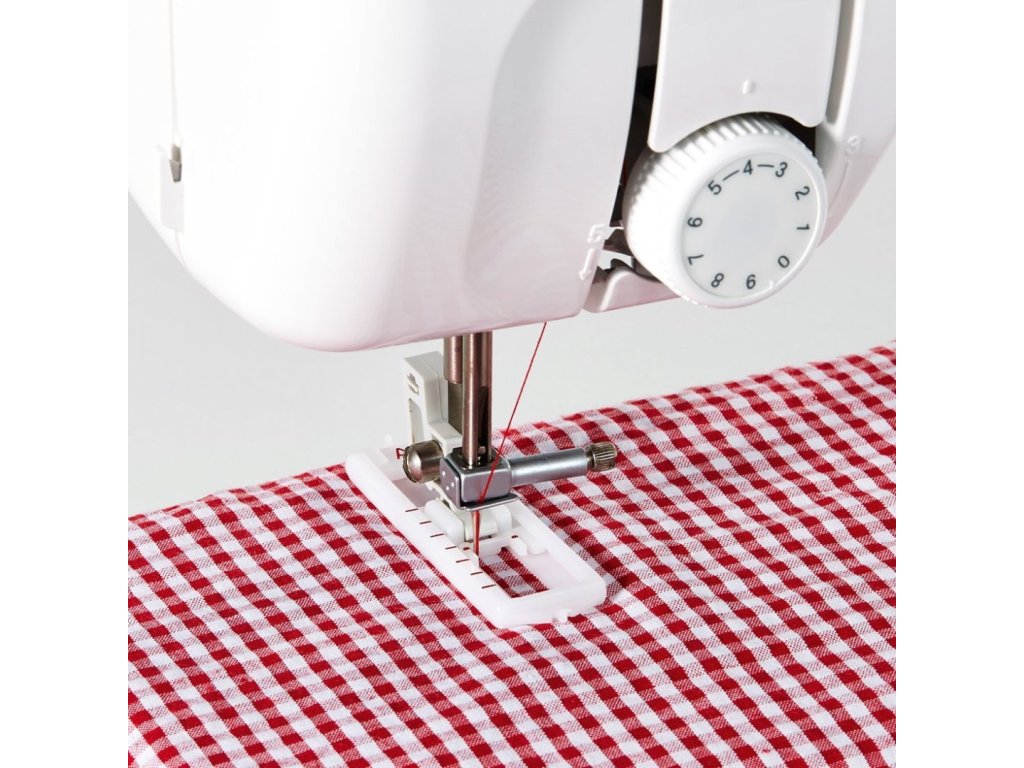 Šicí stroj Brother KE14S ve velmi originálním designu s praktickým volným ramenem je ideální stroj pro děti od 14 let nebo začátečníky. Šicí stroj má jasné LED osvětlení pracovní plochy. Součástí stroje je mechanický chránič prstů a pomocí páčky můžete využít zpátkování, se kterým snadno zapošijete. Stroj nabízí 14 programů pro klasické i dekorativní stehy včetně šití knoflíkových dírek na 4 kroky. Pomocí ovládacího knoflíku jednoduše vyberete požadovaný steh. Napětí nití je regulovatelné. Šicí stroj Brother je dodáván se sadou příslušenství včetně instruktážního DVD.