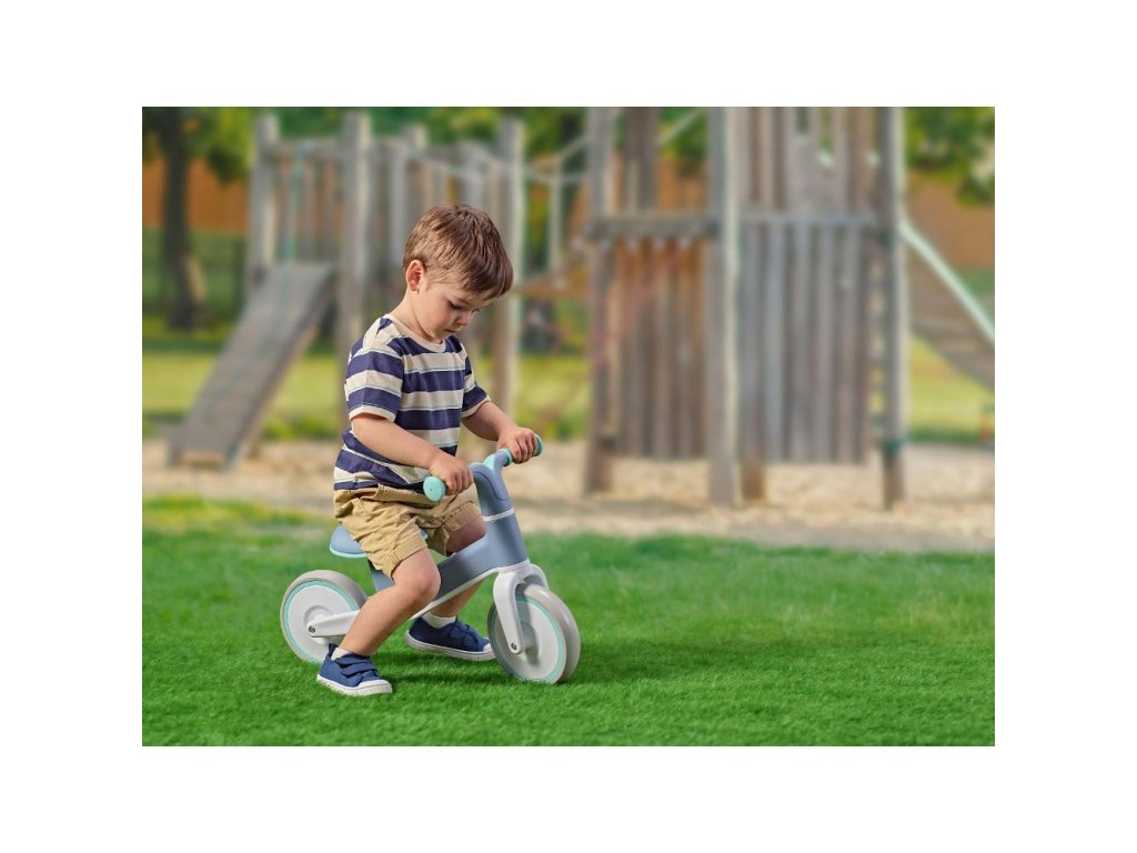 Měkké sedátko je umístěno ve výšce 27 cm a odrážedlo disponuje robustním rámem z pěnového plastu. Řídítka jsou vybavena protiskluzovými rukojetmi. Odrážedlo váží 1,5 kg a má nosnost 20 kg.