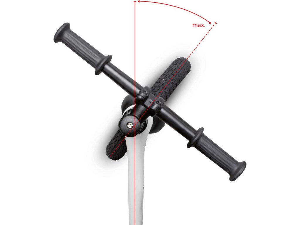 Jednostopé odrážedlo s sportovním designem a integrovanými opěrkami nohou. Nafukovací kola jsou 12 palcová a svítící.