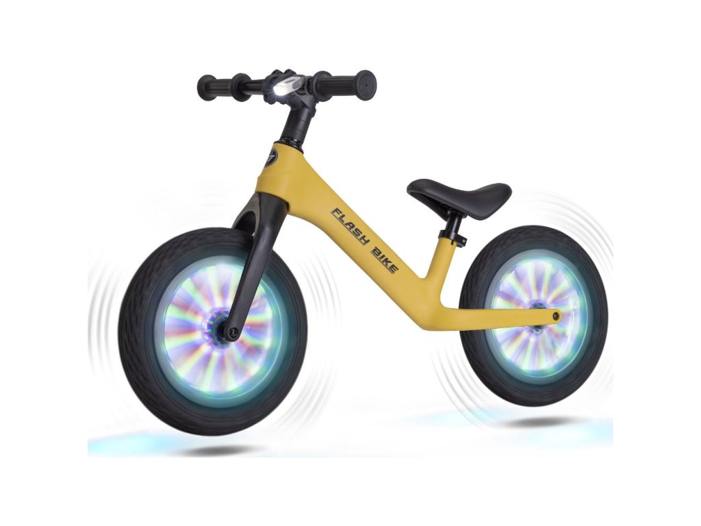 Jednostopé odrážedlo s sportovním designem a integrovanými opěrkami nohou. Nafukovací kola jsou 12 palcová a svítící.