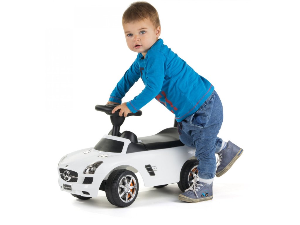Chcete, aby mělo vaše dítě jedinečné odrážedlo, za kterým se budou ostatní děti a rodiče otáčet? Pak mu pořiďte odráželo Mercedes-Benz SLS. Jedná se zmenšenou kopii opravdového sportovního auta. Dítě ocení dostatečně dostatečné velký úložný prostor pod sedátkem, kam si může dát svoje oblíbené hračky.
