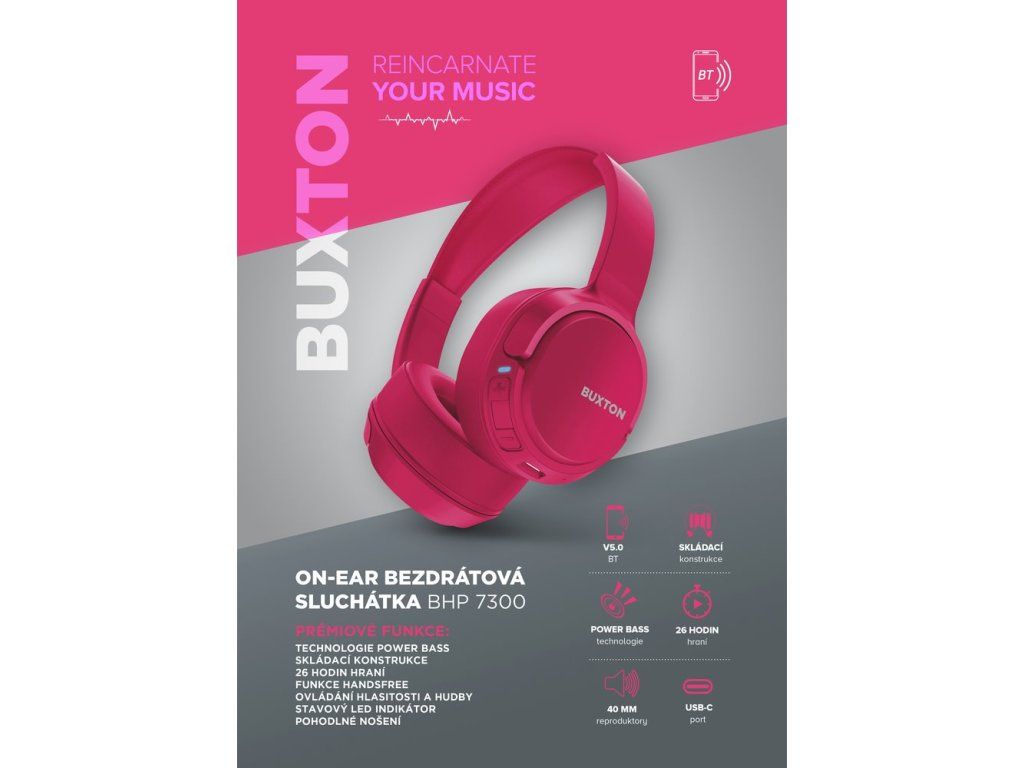 BUXTON BHP 7300 PINK ON-EAR Bezdrátová sluchátka, Lehká, pohodlná, s perfektním zvukem