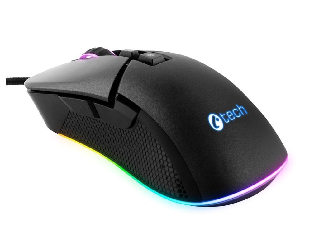 Herní myš C-TECH Dawn Vás na první pohled okouzlí svým elegantním tvarem a RGB podsvětlením. Myš disponuje optickým snímačem Sunplus 199 s maximálním rozlišením 6400DPI, které je možno pomocí tlačítka DPI měnit v 5 úrovních. Myš je vybavena 5 tlačítky, které vám poskytnou dokonalou kontrolu nad hrou. Další dvě tlačítka jsou pro změnu DPI a volbu RGB režimu podsvětlení. 5 RGB módy s 16.8 miliony barev oživí váš stůl nejen při hraní her, ale i při kancelářské práci. Myš C-tech Dawn je díky své ergonomii vhodná pro praváky a k počítači ji připojíte 1,5m opleteným kabelem s USB konektorem.